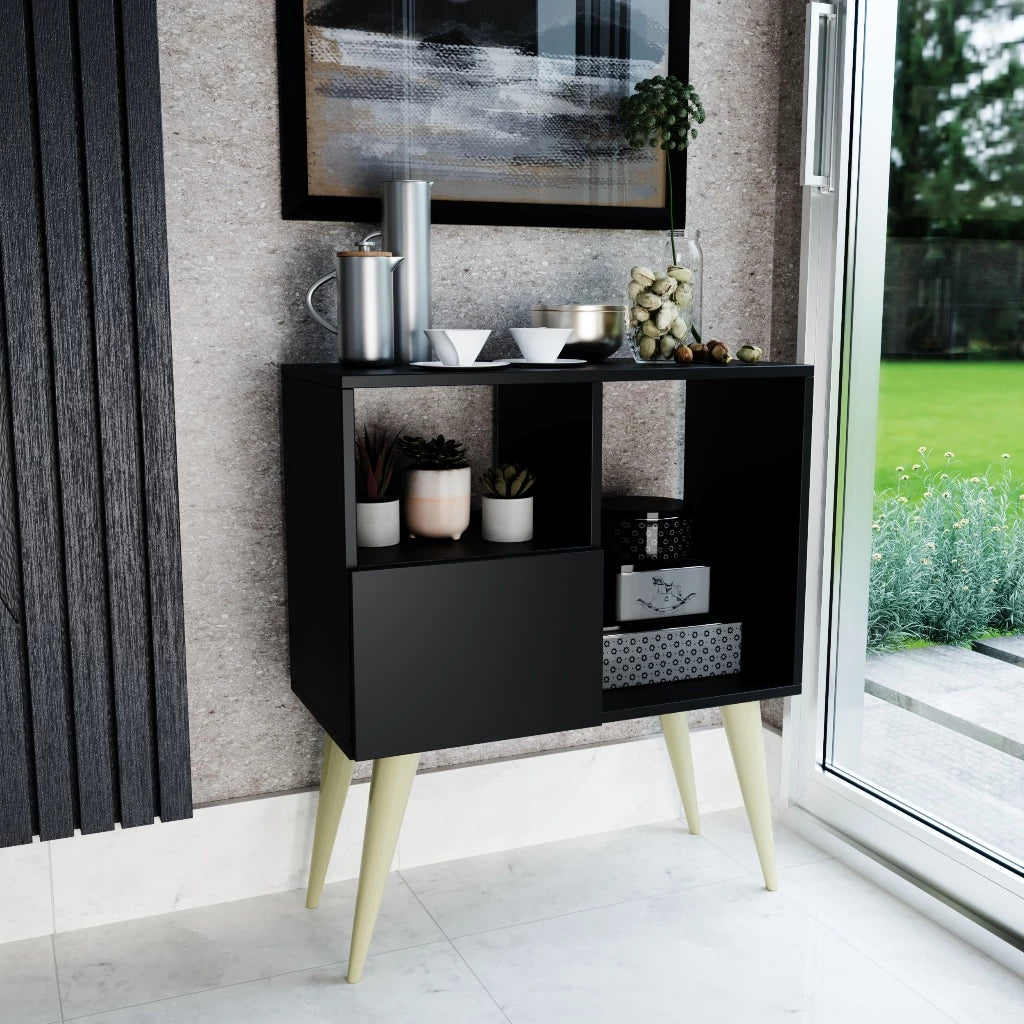 Com um design moderno e compacto, este aparador é perfeito tanto para espaços pequenos como ambientes grandes, seja como um elegante buffet, mini bar funcional ou um cantinho do café.