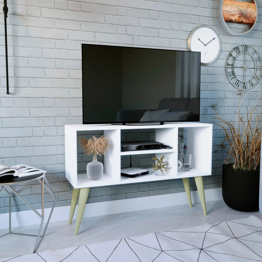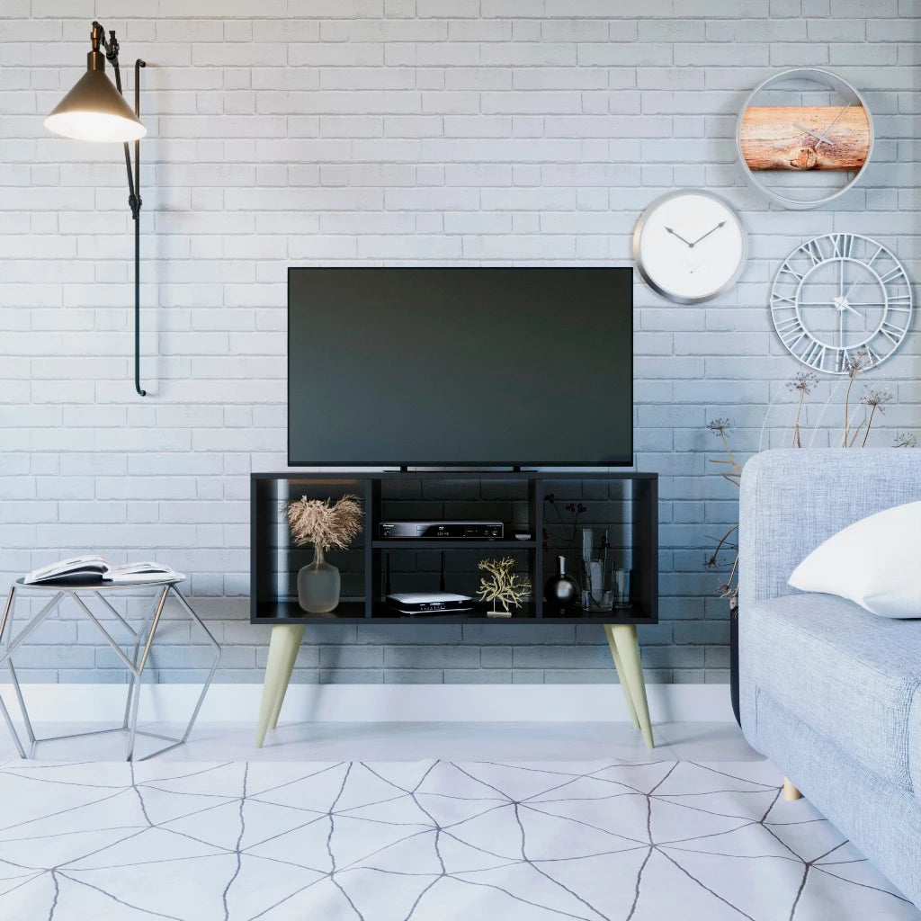 O rack para sala e TV Noruega é a fusão perfeita de estilo retrô e moderno. Seu design simples com pés palito e seus 4 nichos o tornam uma excelente escolha para você organizar e decorar seu ambiente.